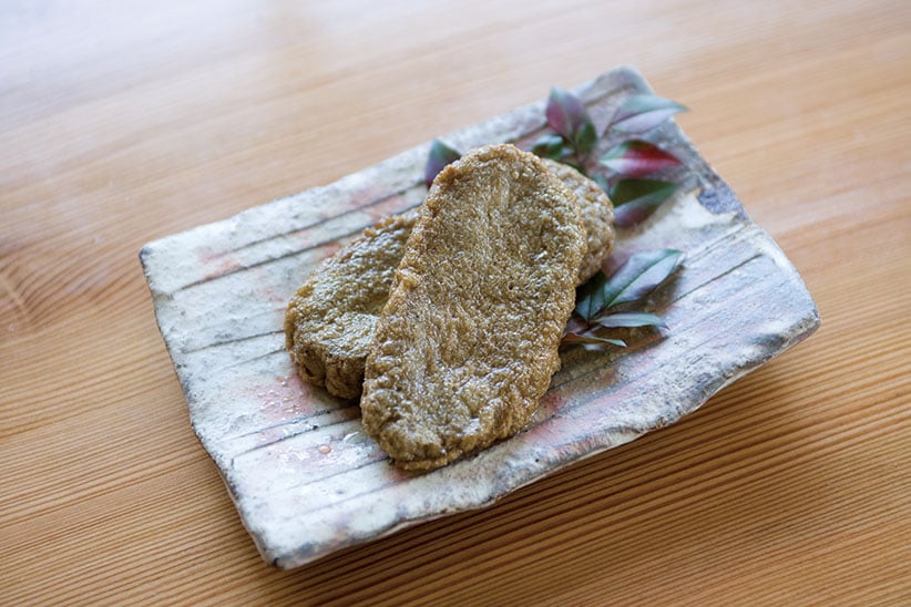 愛媛県沿岸でとれる小魚を皮や骨ごとすり潰し薄く平らにして揚げたもので、揚げ蒲鉾の一種です。
